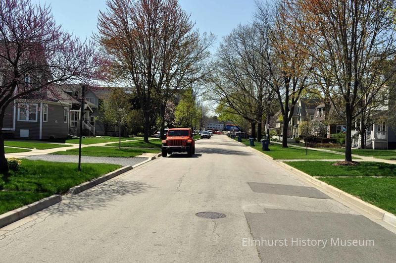 N. Larch Ave looking south from Second Street, towards a Metra train.Photograph Details