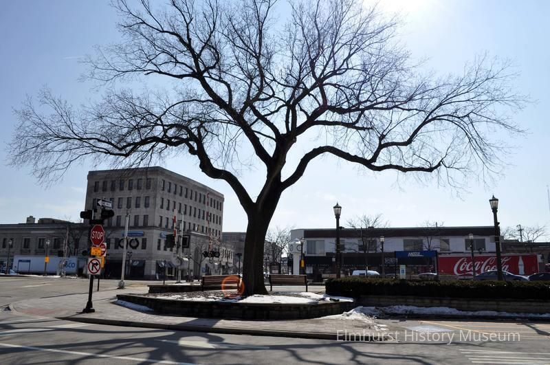 N. York Street and W. First Street looking south across the railroad tracks towards Park Avenue.Photograph Details