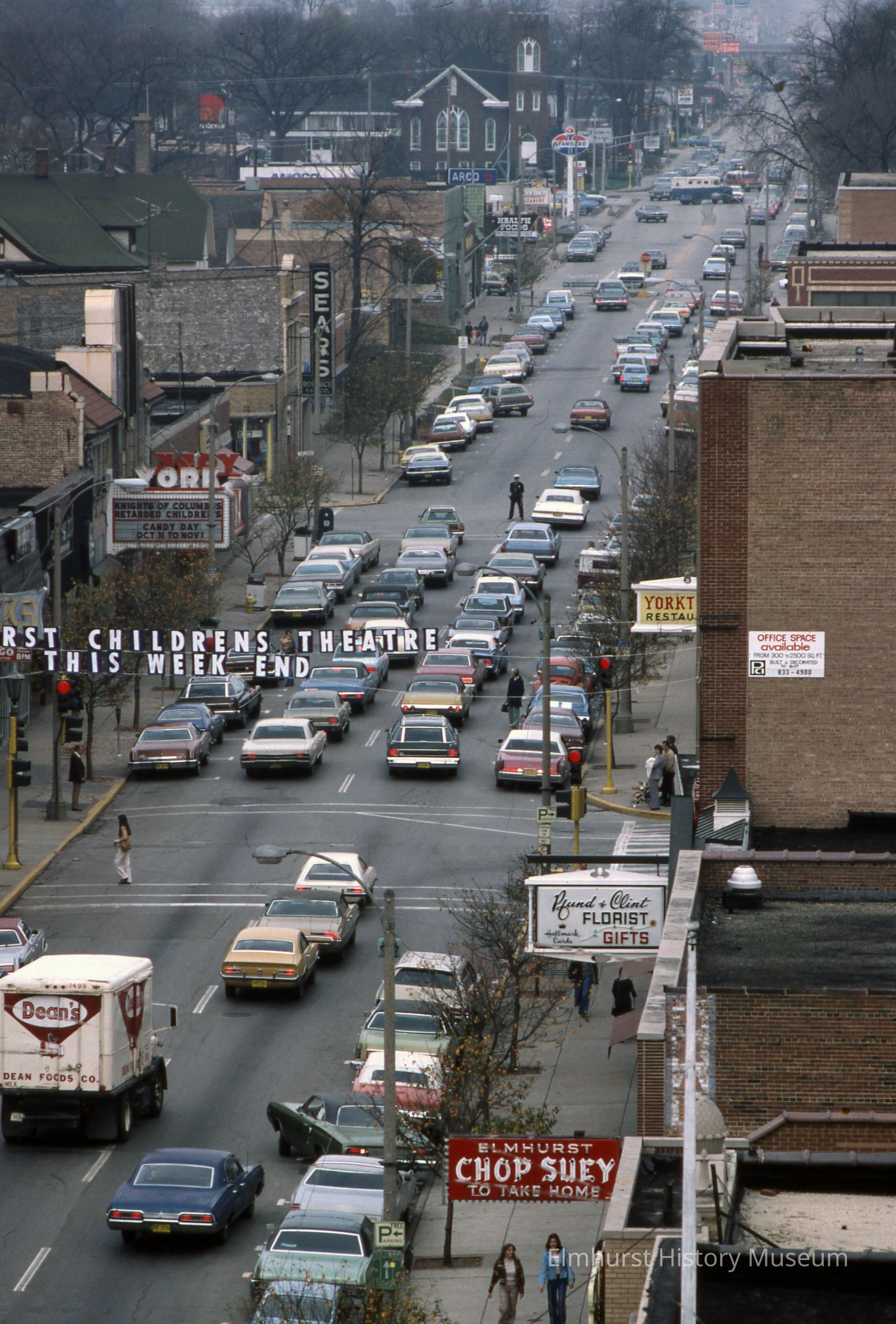 View of N. York Street downtown area from the roof of the Elmhurst National Bank Building at 105 S. York StreetPhotograph Details