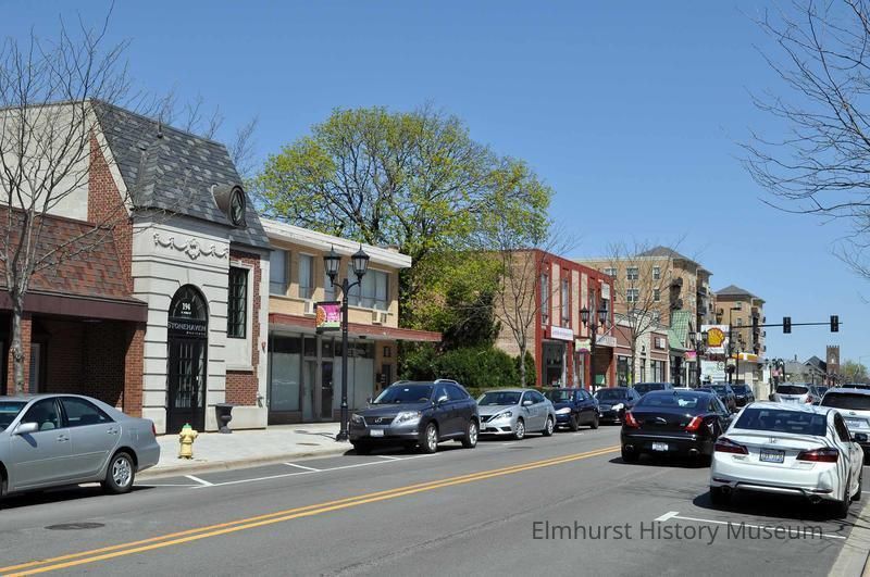 Storefronts on the west side of N. York Street, looking north towards Third Street. Stonehaven Mortgage is visible at left at 194 N. York.Photograph Details