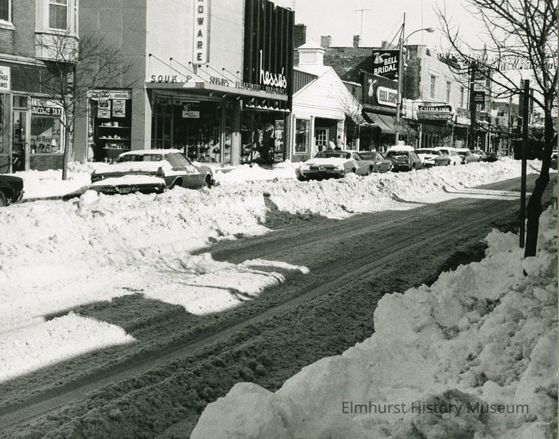 Written notes on back: N. York St. Elmhurst / and a bit of an / April snow problem