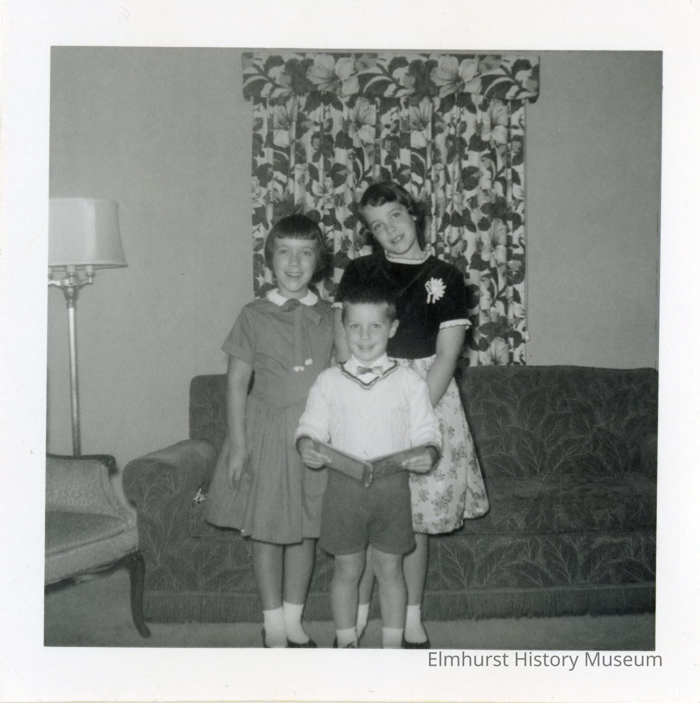 Siblings Nancy, Carol, and Jim Wilson at the Wilson household on Hawthorne Avenue.Photograph Details