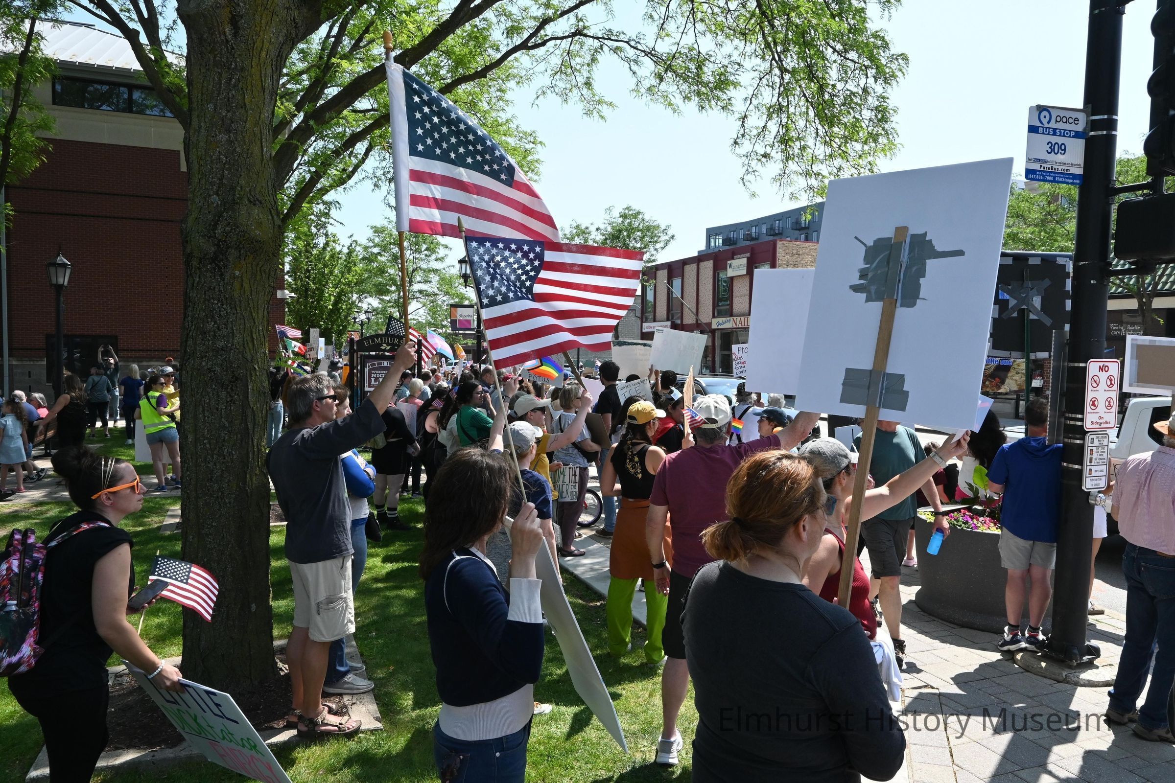 Marchers at Elmhurst City Hall for the "No Kings" protest event against the President Trump administration.Photograph Details