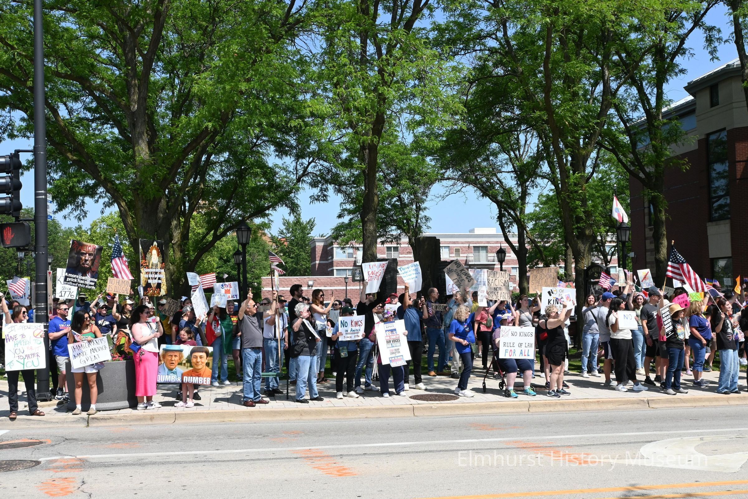 Marchers at Elmhurst City Hall for the "No Kings" protest event against the President Trump administration.Photograph Details