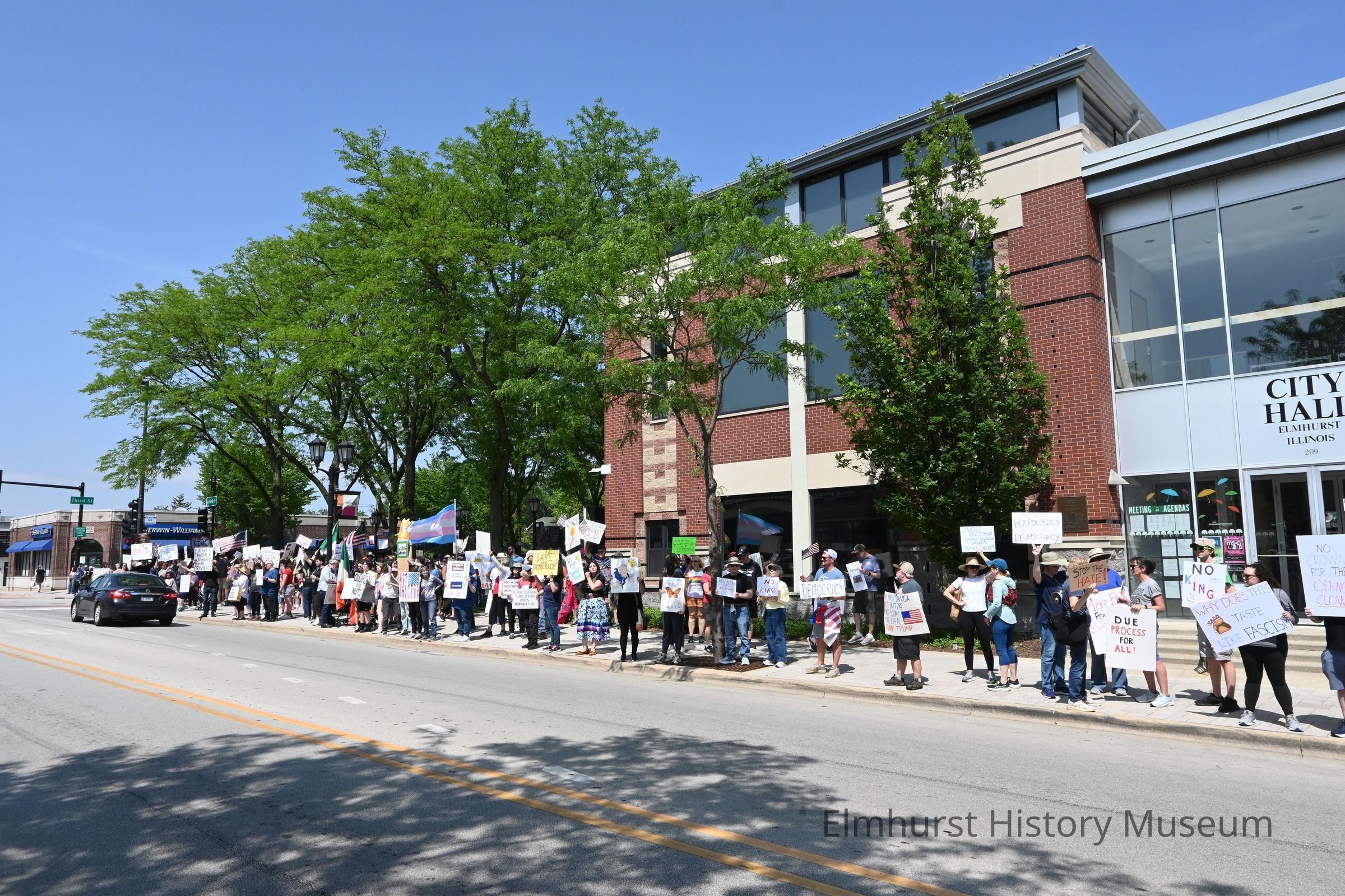 Marchers at Elmhurst City Hall for the "No Kings" protest event against the President Trump administration.Photograph Details
