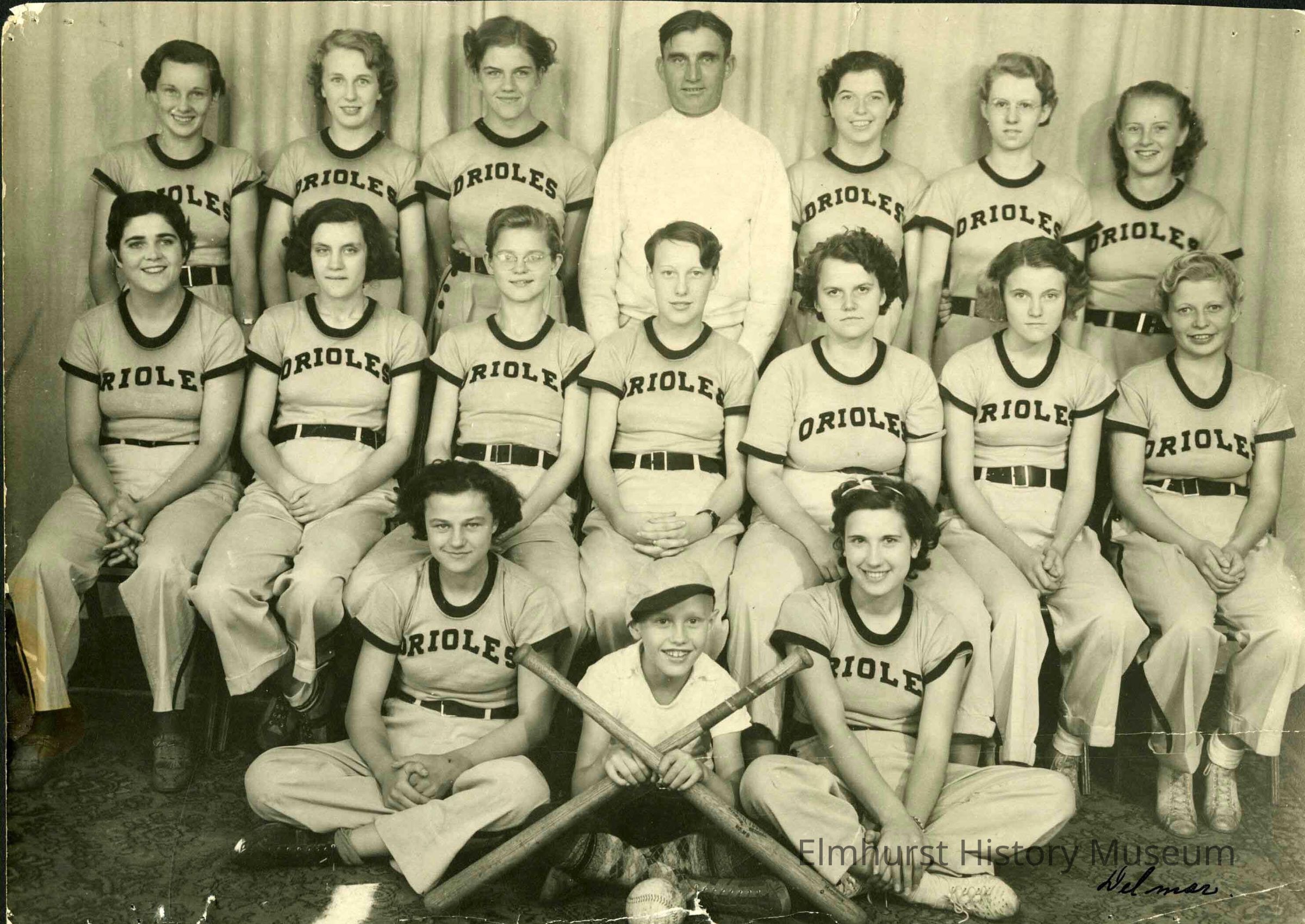 The Elmhurst Orioles Softball Team sponsored by Cooper-Pollack Ford dealership. Photo by Delmar Studio in Elmhurst.Photograph Details
