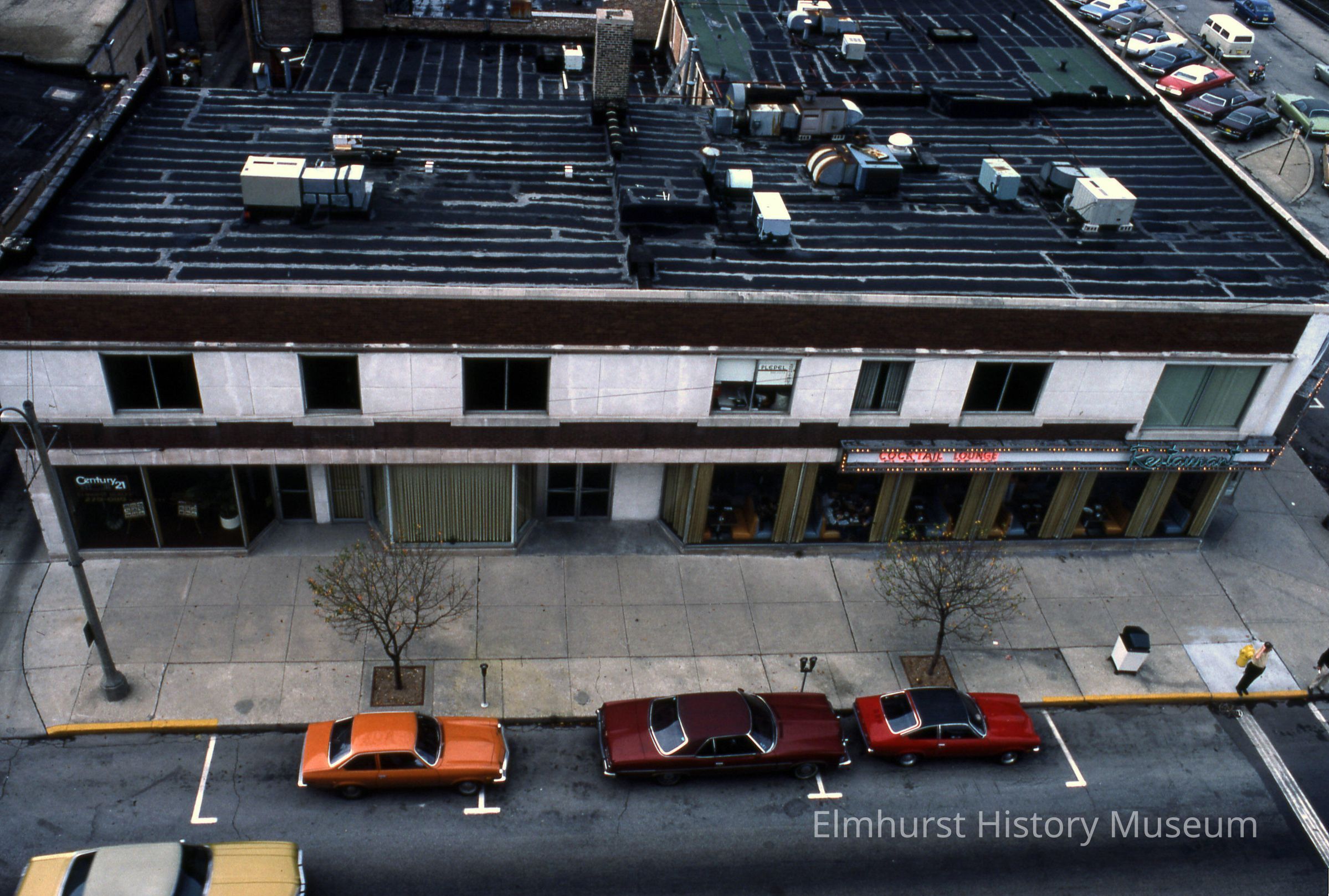 Aerial view of of Paradise Restaurant, on York St. and Park Ave., taken from the roof of the Elmhurst National Bank building.Photograph Details