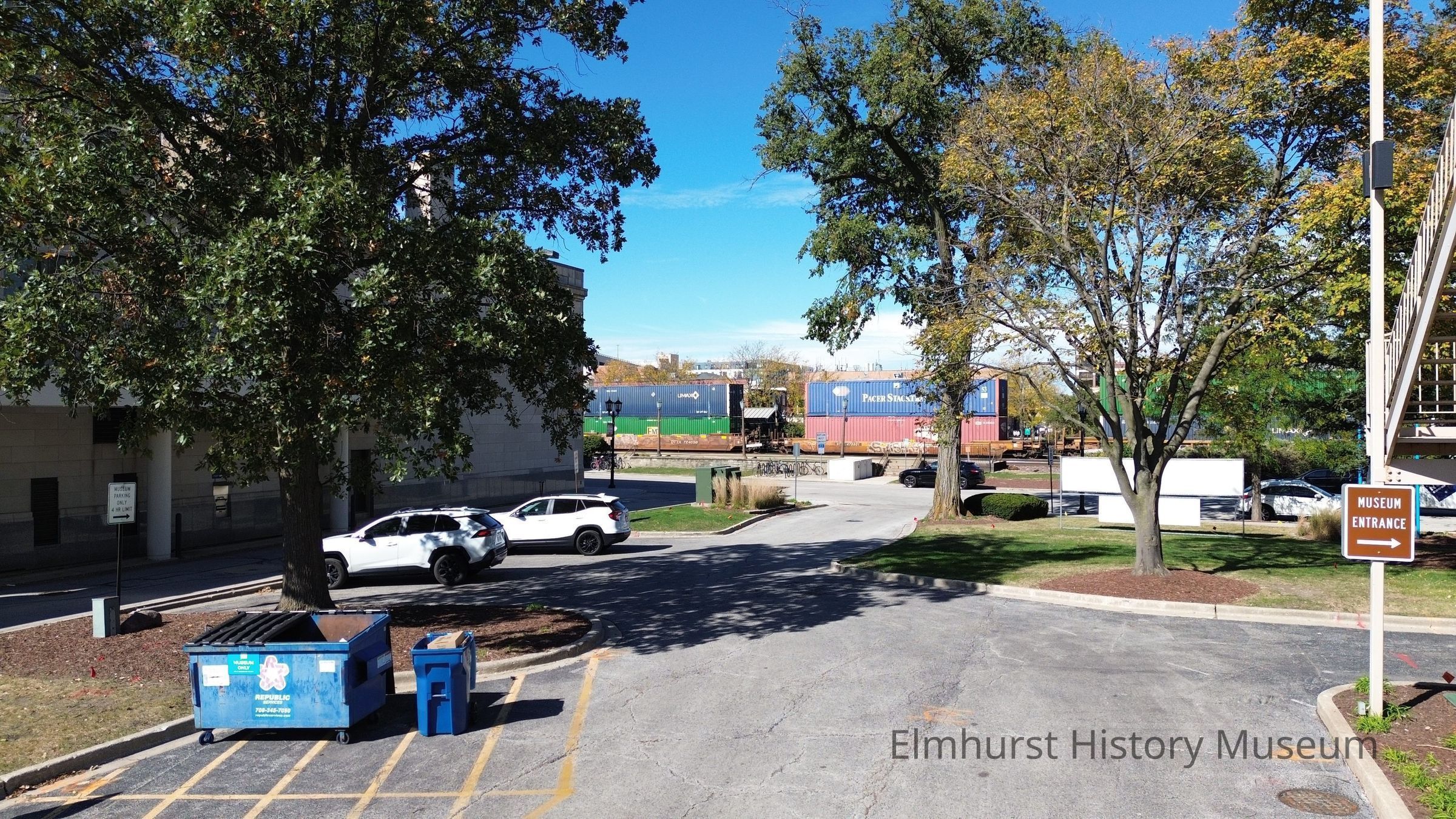 Rear parking lot at the Elmhurst History Museum, looking north towards E. Park Avenue.Photograph Details