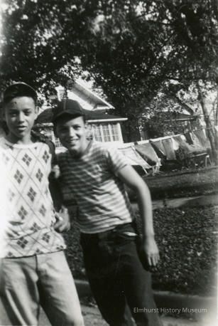 Written in blue ink on the back: Pete Giebel '49 / Julius Dalpiaz '49 Stamped on the back: 186