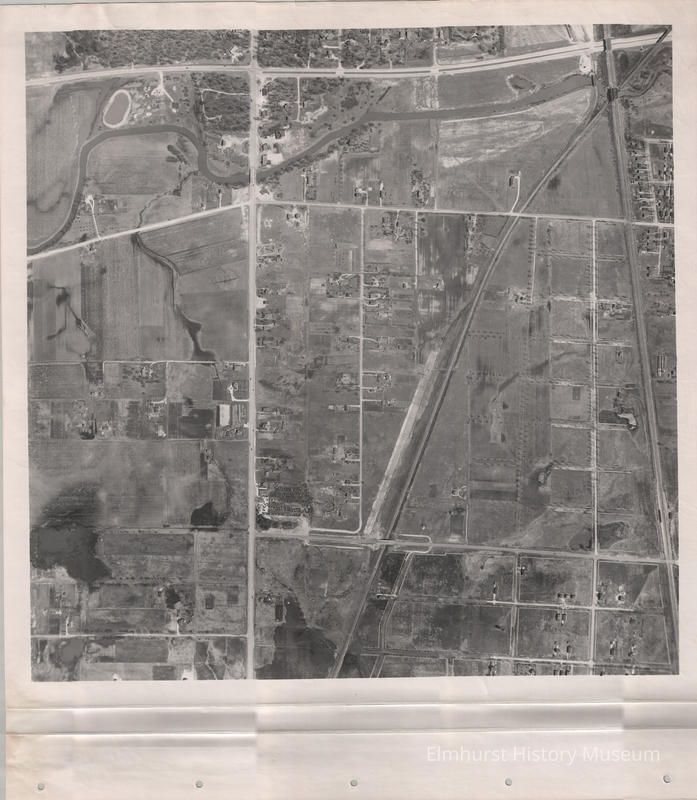 Black and white photograph, aerial view of Elmhurst Area--sheet 13 of bound volume. See M90.16.1 for placement on larger Elmhurst area map.Made/Created