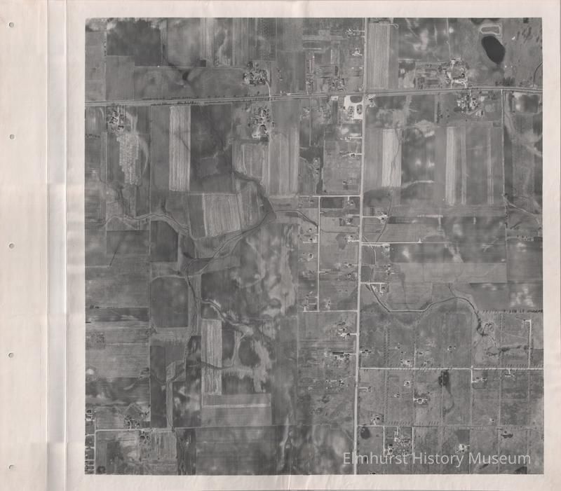 Black and white photograph, aerial view of Elmhurst Area--sheet 59 of bound volume. See M90.16.1 for placement on larger Elmhurst area map.Made/Created