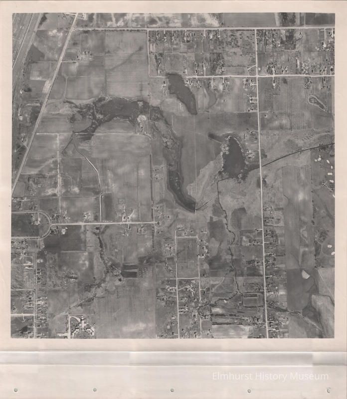Black and white photograph, aerial view of Elmhurst Area--sheet 64 of bound volume. See M90.16.1 for placement on larger Elmhurst area map.Made/Created