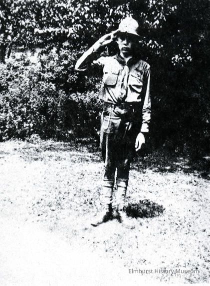 Peirce Williston in his Boy Scout uniform demonstrating the Boy Scout salute