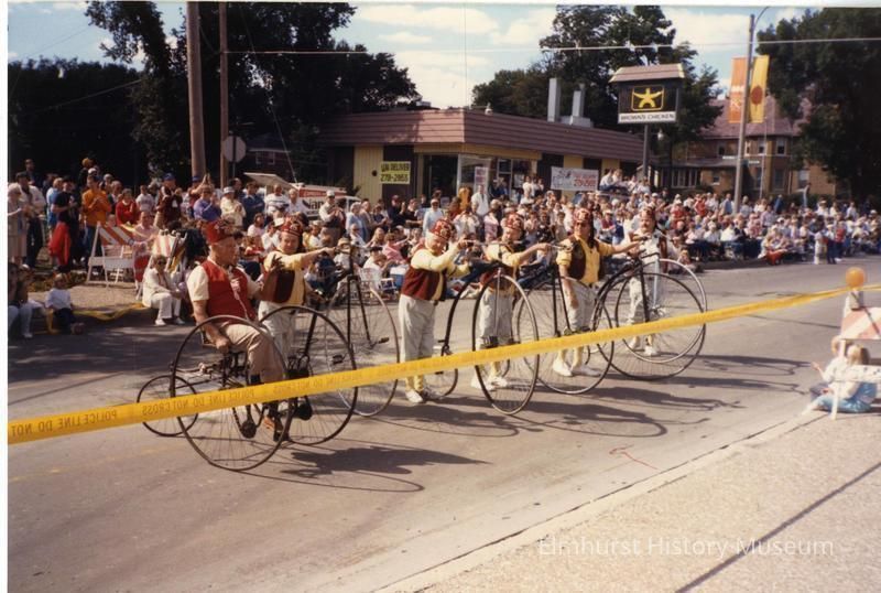 Shriners on bicycles ride in the Elmhurst Sesquicentennial Parade, near S. York Street and Seminole Ave.