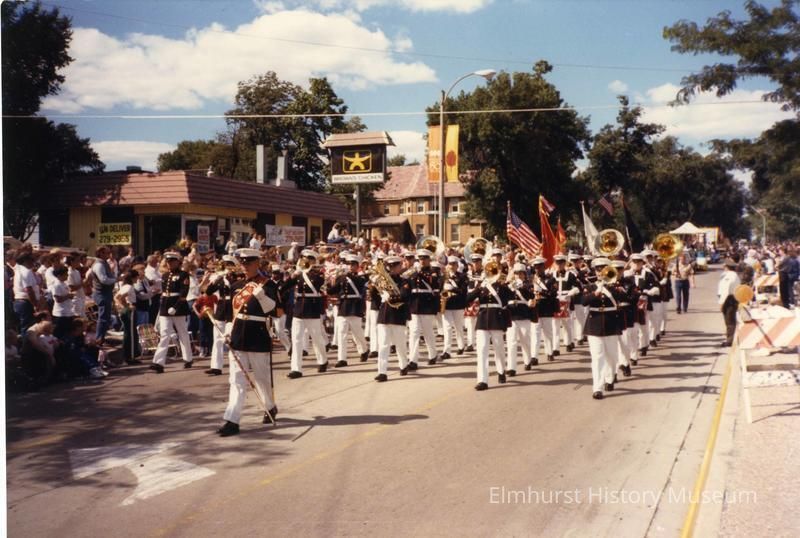 U.S. Marine Corps band in the Elmhurst Sesquicentennial parade, near S. York Street and Seminole Ave.Photograph Details