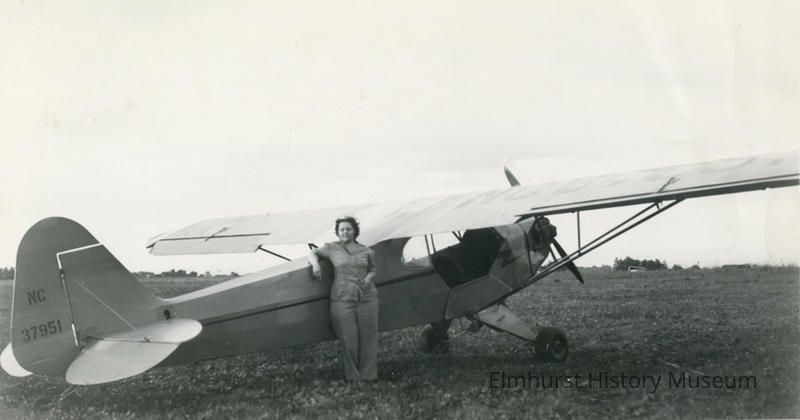 Pilot Dorothy Kleinbeck standing with a J-3 Cub airplanePhotograph Details