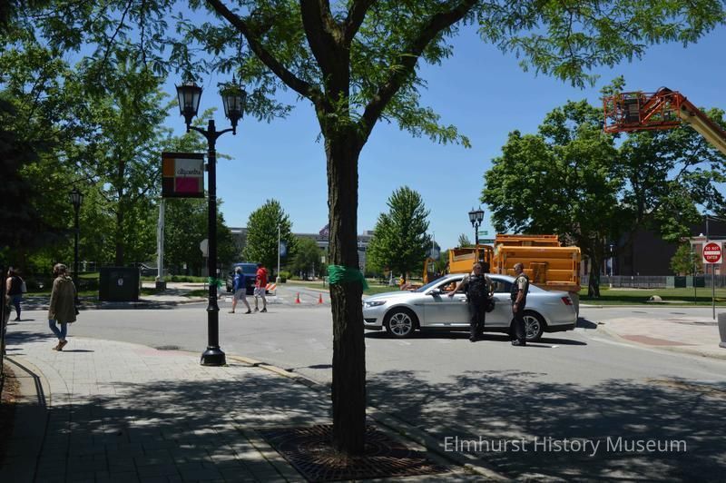 Elmhurst police close the intersection of Cottage Hill Avenue and Adelaide Street in anticipation of protests related to the killing of George Floyd in Minneapolis and the reaction against police brutality.Photograph Details