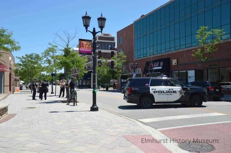 Police Barrier at York and Schiller, looking east, in anticipation of protests related to the killing of George Floyd in Minneapolis and the reaction against police brutality.Photograph Details