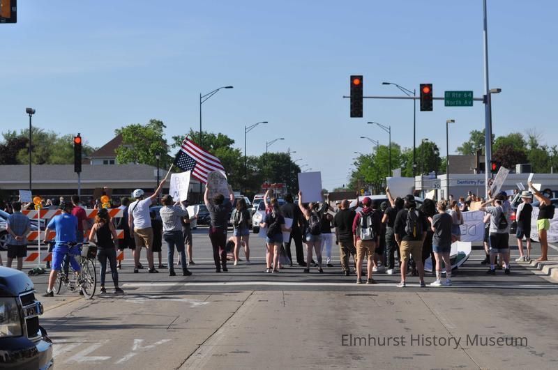 Police brutality/ Black Lives Matter protest related to the killing of George Floyd by a police officer in Minnesota on May 25, 2020, held at the intersection of North Avenue and N. York Street.Photograph Details
