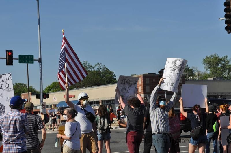 Police brutality/ Black Lives Matter protest related to the killing of George Floyd by a police officer in Minnesota on May 25, 2020, held at the intersection of North Avenue and N. York Street.Photograph Details