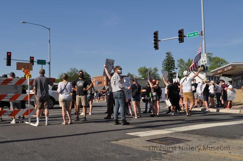 Police brutality/ Black Lives Matter protest related to the killing of George Floyd by a police officer in Minnesota on May 25, 2020, held at the intersection of North Avenue and N. York Street.Photograph Details