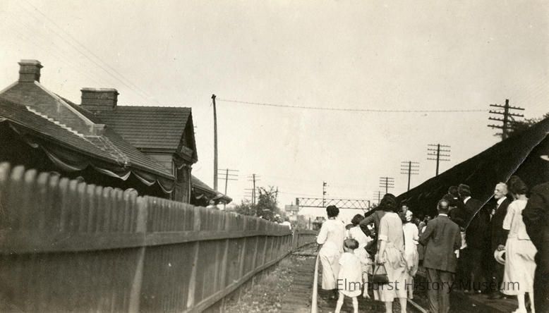Spectators of funeral train of President Warren G. Harding as it passes through Elmhurst.Photograph Details