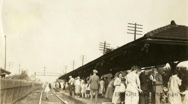 Spectators at funeral train of President Warren G. Harding at Elmhurst Chicago and North Western Railroad station.Photograph Details
