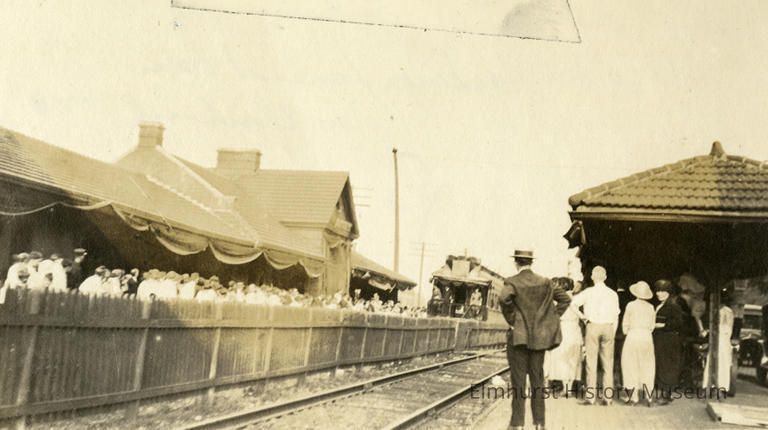 Spectators at funeral train of President Warren G. Harding at Elmhurst Chicago and North Western Railroad station.Photograph Details
