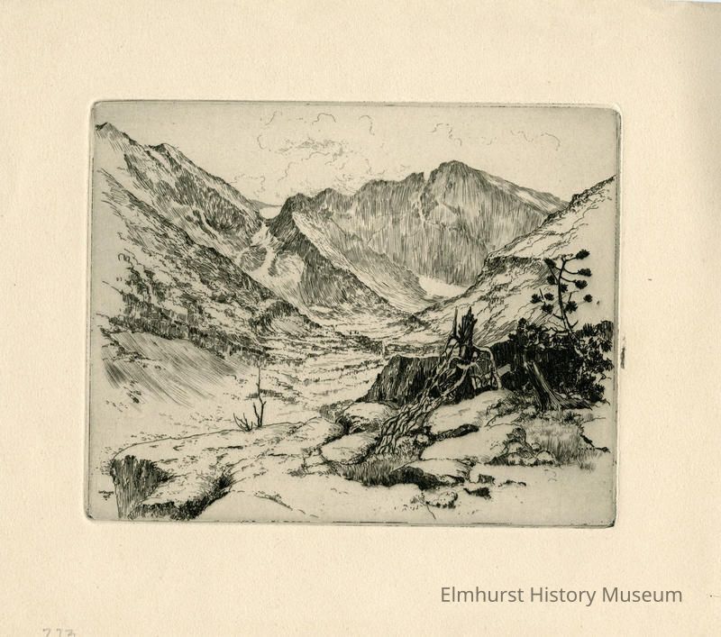 Print, etching on paper by Lee Sturges, UNTITLED Mountain scene