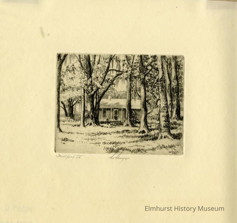 Print, etching on paper by Lee Sturges, UNTITLED, Forest CabinInscription/Signature/Marks