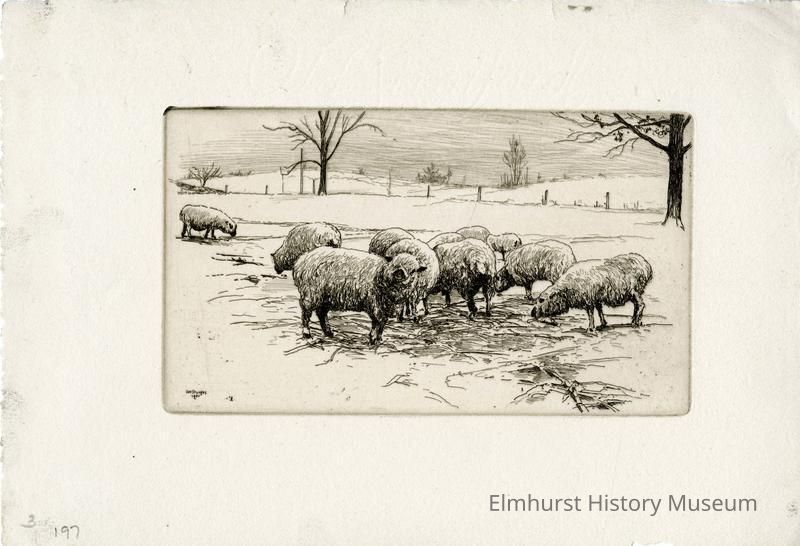 Print, etching on paper by Lee Sturges, UNTITLED (Feeding The Sheep In Winter)Inscription/Signature/Marks