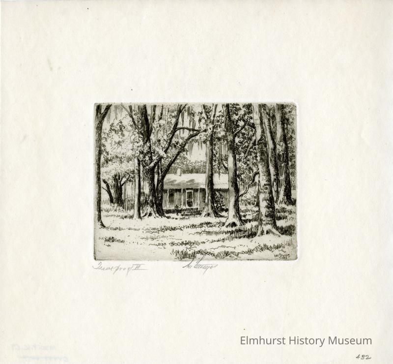 Print, etching on paper by Lee Sturges, UNTITLED, Cabin in the ForestInscription/Signature/Marks