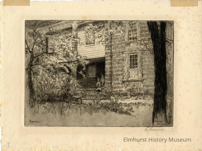 Signature in print in LL 'Blossom Time' and in LR 'Lee Sturges 1917'; in pencil, in LR margin 'Lee Sturges/17' and in LLC of paper '8' and in LRC of paper '103'