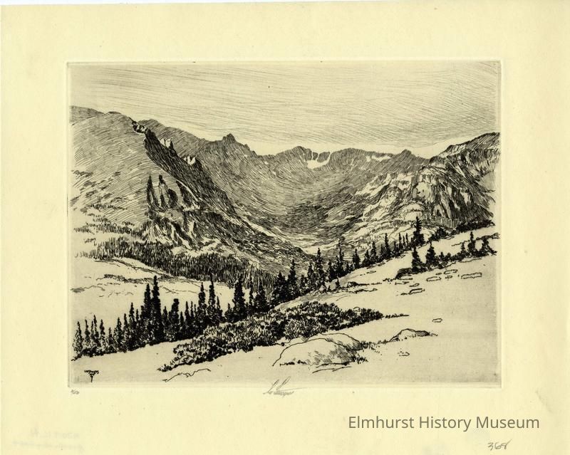 Print, etching on paper by Lee Sturges, A ROCKY MOUNTAIN LANDSCAPEInscription/Signature/Marks