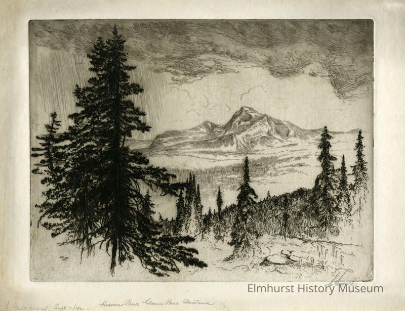 Print, etching on paper by Lee Sturges, HEAVEN'S PEAK, Glacier Park, MontanaInscription/Signature/Marks