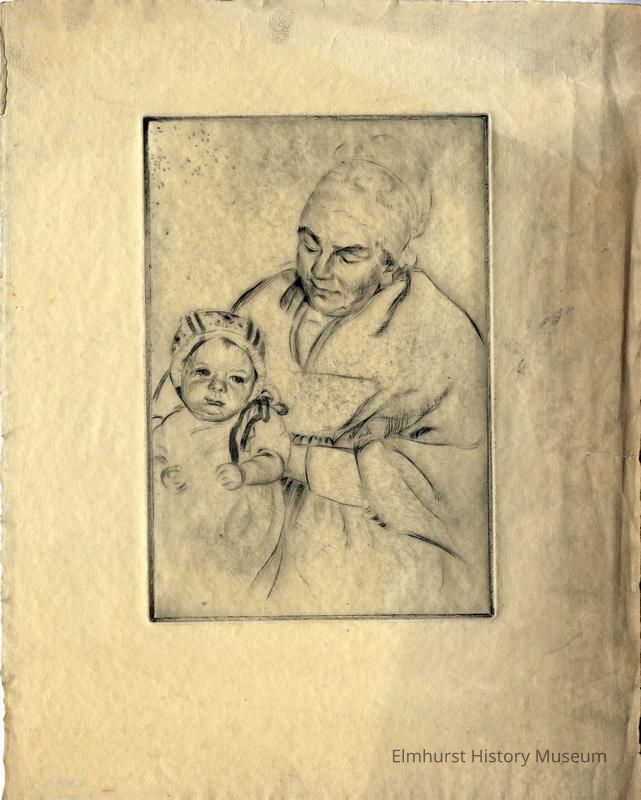 Print, etching on paper by Lee Sturges, UNTITLED, Mother and Child