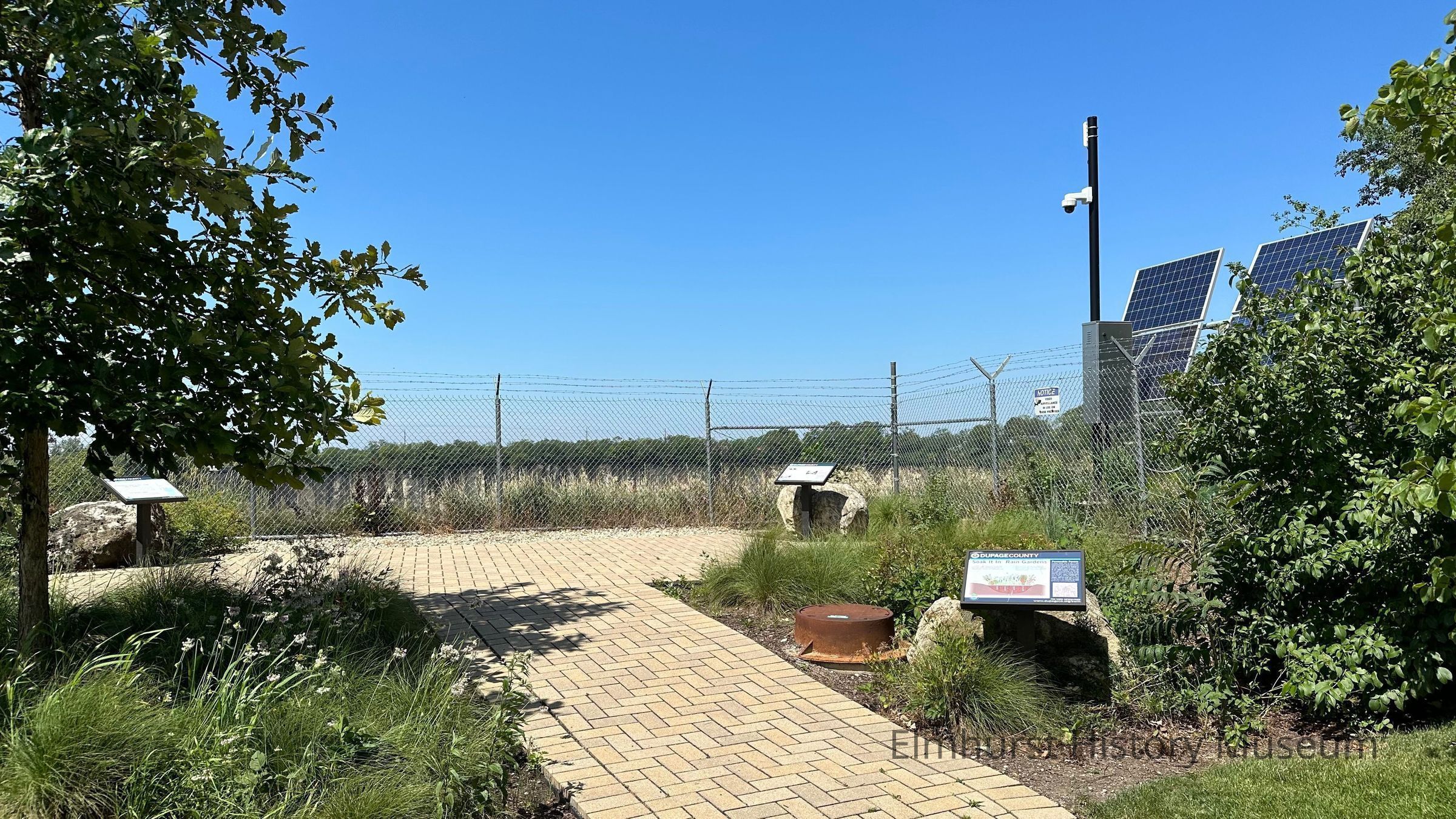 Elmhurst Chicago Stone Quarry observation deck at the northwest corner of First Street and Highland Avenue, looking west towards the quarry..Photograph Details