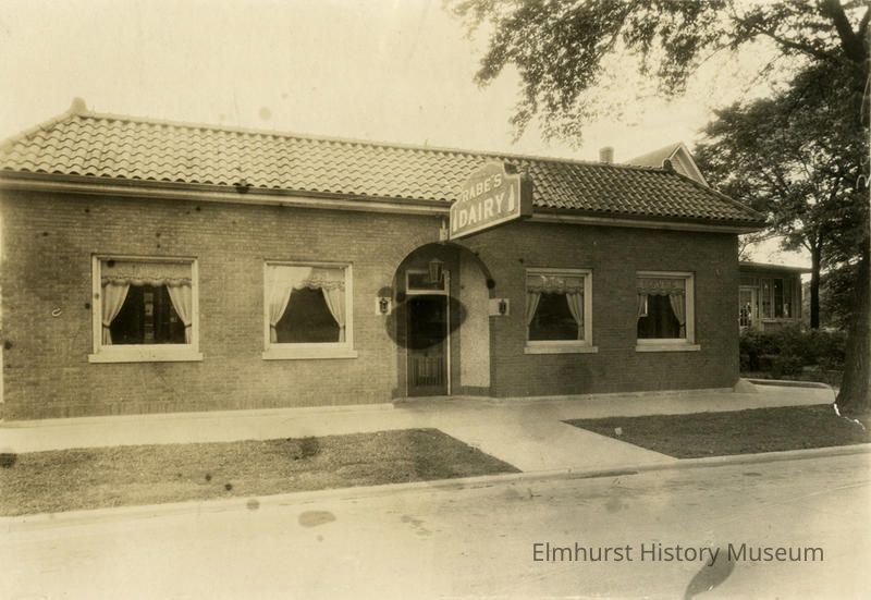 Rabe's Dairy Store, 135 E. First Street. Fred H. Rabe's house is on the right.Photograph Details