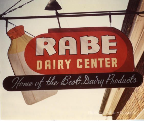 Rabe's Dairy sign reading "Rabe Dairy Center / Home of the Best Dairy Products" 135 E. First Street. No date.