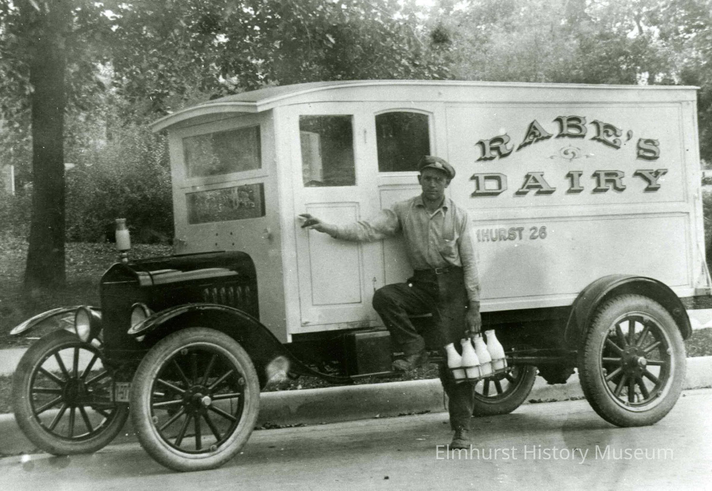 Rabe's Dairy delivery truck and employee Otto Freese.Photograph Details