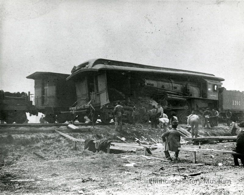 Men cleaning up after the rear-end collision of the Buffalo Bill Show train on the Chicago & North Western line, one mile west of Melrose Park.Made/Created