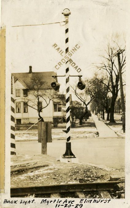 Lights at Myrtle Avenue crossing of Chicago & North Western Railroad.Photograph Details