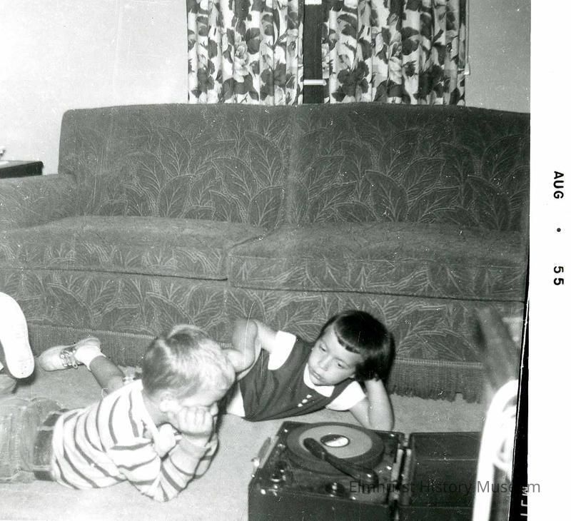 Nancy Wilson and neighbor Harry George Johnsten listen to a record player in the living room at 598 S. Hawthorne Avenue.Photograph Details