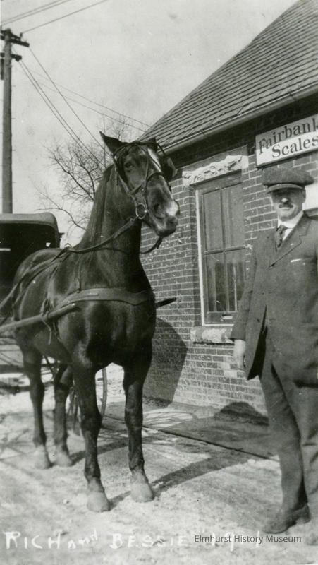 Elmhurst-Chicago Stone Company employee Richard Hammerschmidt with his horse BessiePhotograph Details