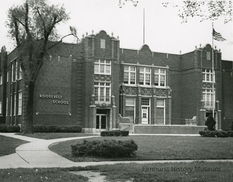 On back: Roosevelt School-W. Grantley & Myrtle Aves. / Taken May 20, 1966 by R.L. Mahon with Kodak Retinette (45 mm lens) / 20/2 Medalist Stamped on back: ELMHURST PUBLIC LIBRARY