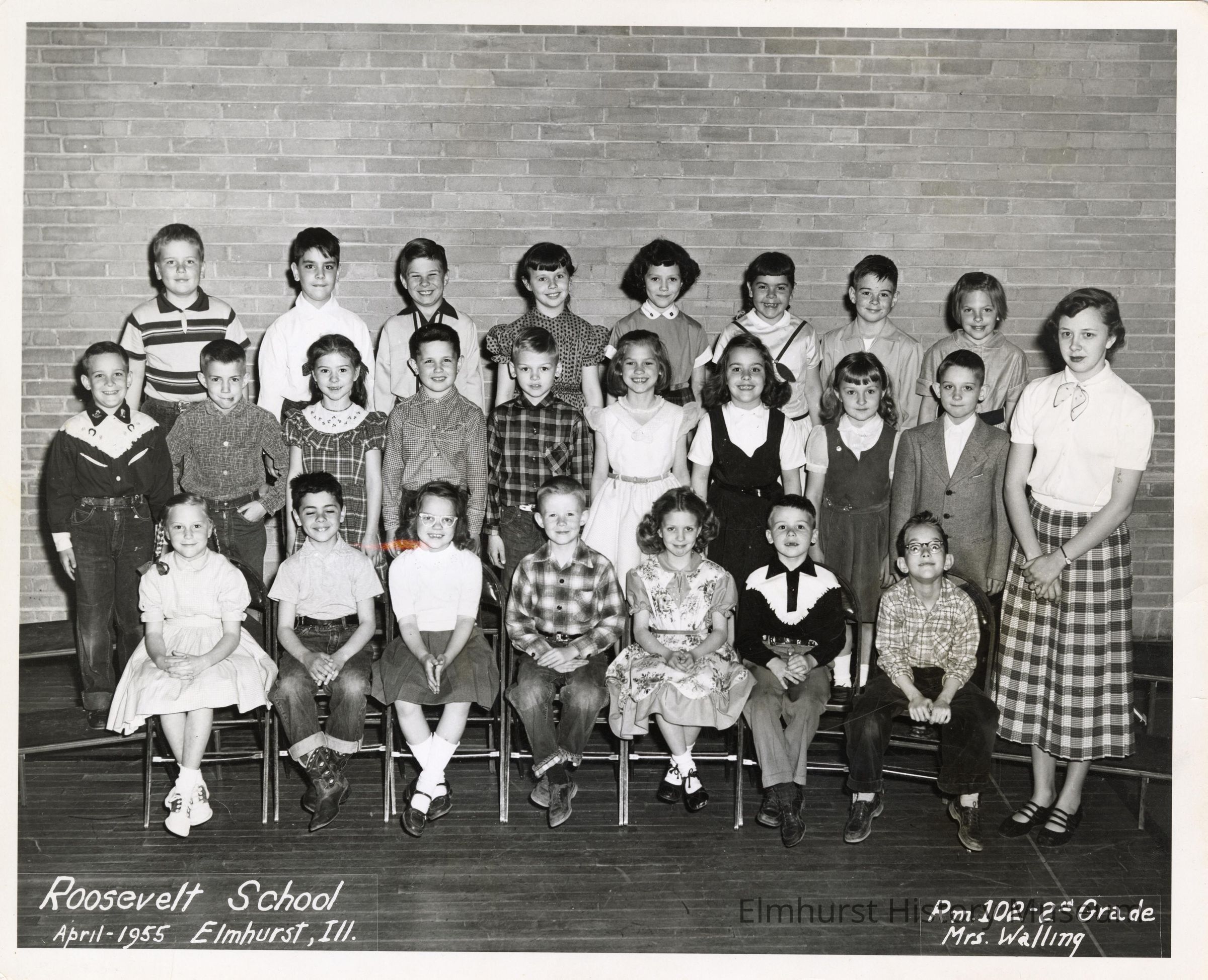 Class portrait of the second grade class at Roosevelt Elementary School under teacher Mrs. Walling.Photograph Details