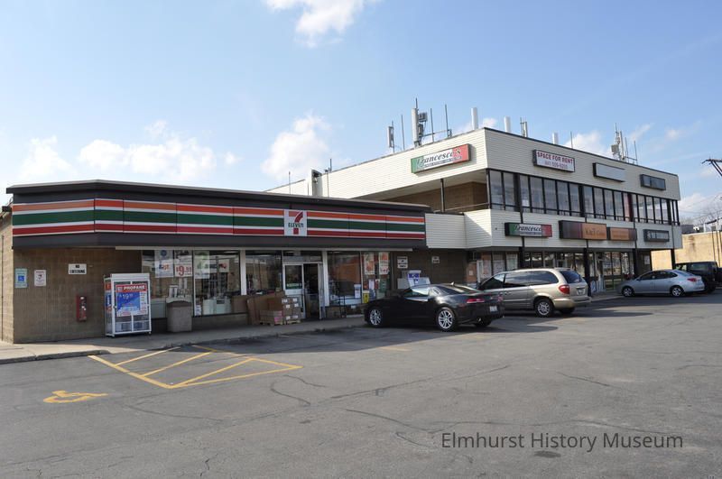 S. York Street Commercial Block, just south of Vallette Street. Tenants include K&T Colors at 586 S. York and 7 Eleven at 572 S. York. The other office spaces are vacant.Photograph Details