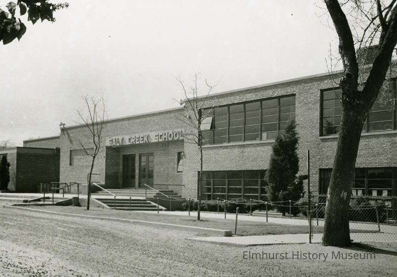 On back: Salt Creek School (Dist. 48) / 17 W 060 Harrison St. / Taken May 15, 1967 by R.L. Mahon, with Kodak Bantam Camera (45mm lens and KT filter) Stamped on the back: ELMHURST PUBLIC LIBRARY