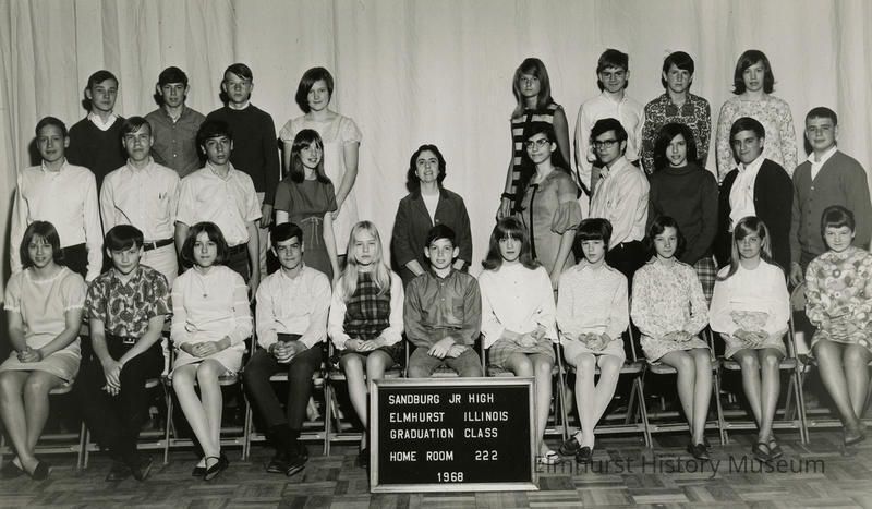 Sandburg Jr. High class photograph, homeroom 222 with Ms. Roberta Dunlap