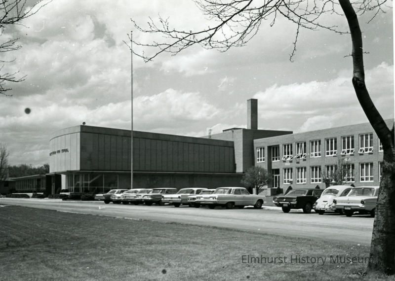 The south façade of Sandburg Junior High School at 345 E. St. Charles Road, looking northwest.